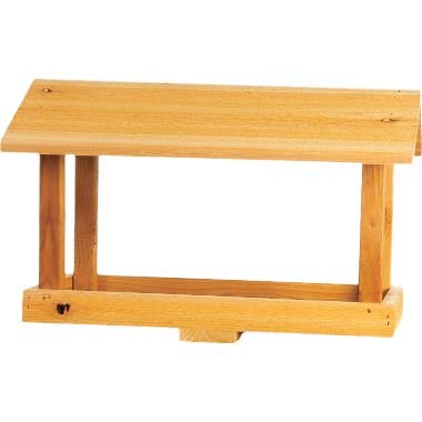 These bird feeders feature cedar construction for added strength and long-lasting durability. Each feeder includes a post mount (post not included). Made in USA.Available: Double-Hopper FeederFill with two seed varieties. Dimensions: 22"L x 11"W x 10"H. Medium Fly-Through FeederPerforated metal bottom with rust-resistant, powder-coated paint. Dimensions: 19"L x 14"W x 14"H. Large Fly-Through FeederPerforated metal bottom with rust-resistant, powder-coated paint. Dimensions: 22"L x 17"W x 16"H.