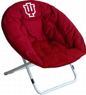 Great for television and video games. Fits perfectly in game room or dorm room. Measures 30'' in diameter and stands 29'' tall. Comfortable foam filled 27'' round seating area. Folds flat for storage and transport. Frame is powder-coated steel tubing. Seat cover is polyester with screen-printed Indiana Hoosiers logo on front. Officially licensed by the NCAA.