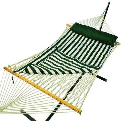Algoma 13 foot Cotton Rope Hammock with Hanging Hardware Pad and Pillow Green / White Review
