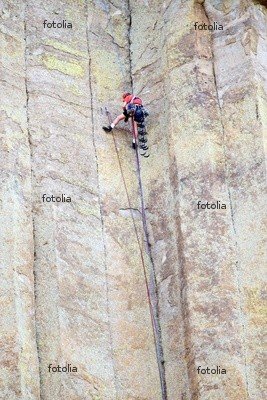 Wallmonkeys Peel and Stick Wall Graphic - 18"H x 12"W - Mountain Climbing on Devil's Tower, Wyoming Feature